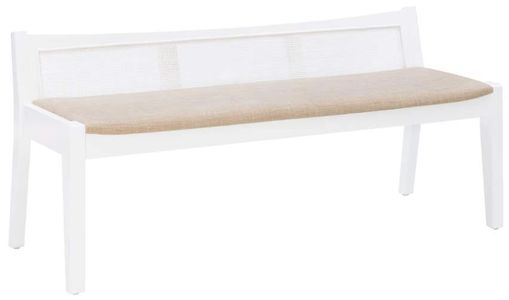 This showstopping bench features a low-profile back with cane stitching and a padded seat in beige upholstery. Blending contemporary craftsmanship with timeless style, this minimalist piece says a great deal in few words.Read More