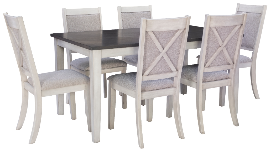Complete 7-Piece Set: This all-in-one set includes a dining table and 6 upholstered x-back chairs. Offering both functionality and style, it’s a practical and elegant solution for revamping your dining space.