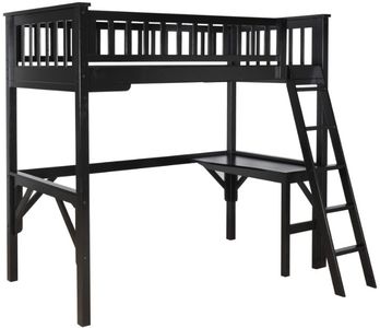 Maximize your child's bedroom space with this twin study loft bed, a stylish and functional solution designed for modern living. Crafted from durable wood with a sleek black finish, this loft bed features a built-in desk and open shelving, providing a dedicated area for study and storage.Read More